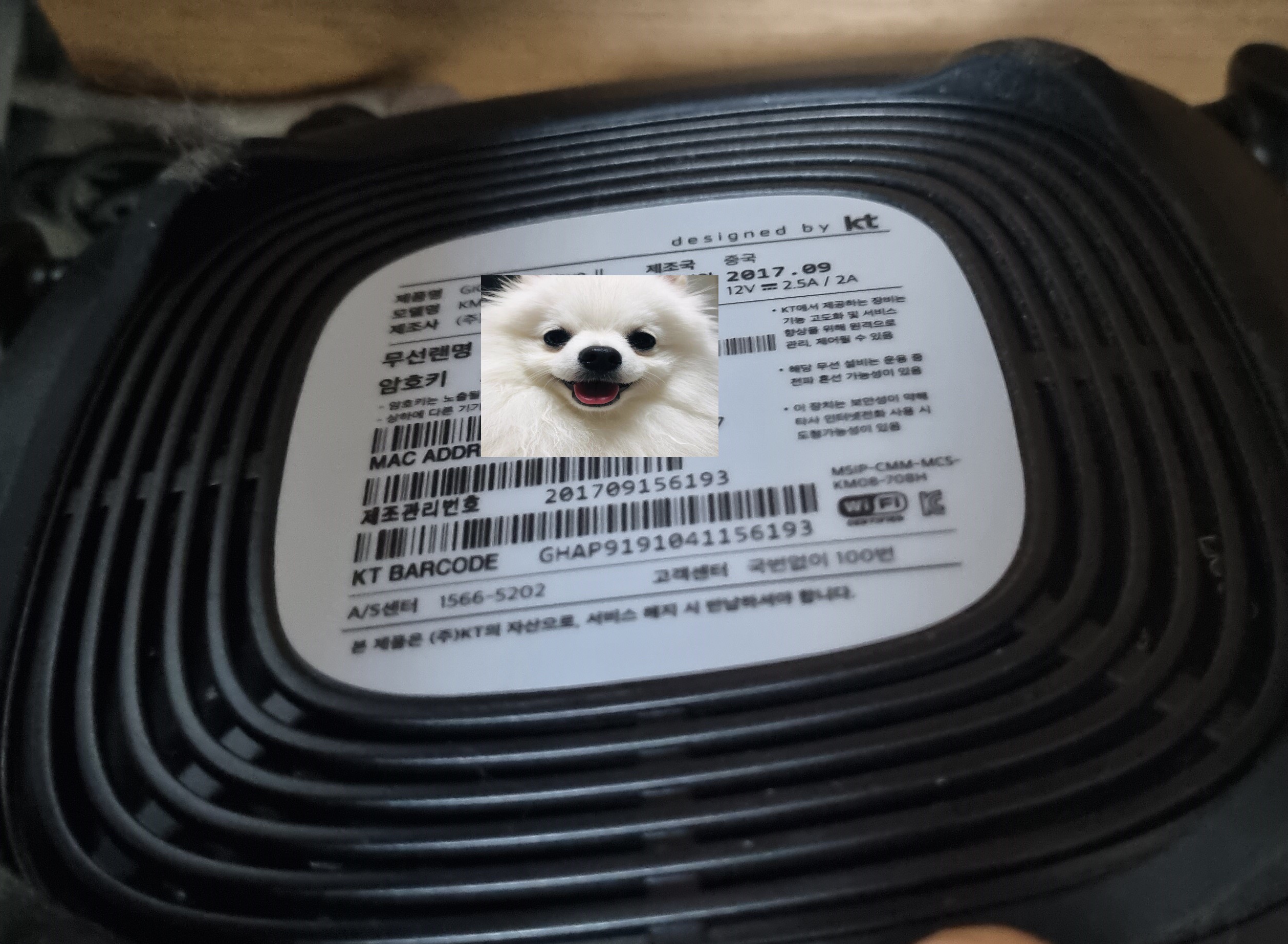 모뎀을 뒤집으면 그 뒤에 비밀번호가 보인다.