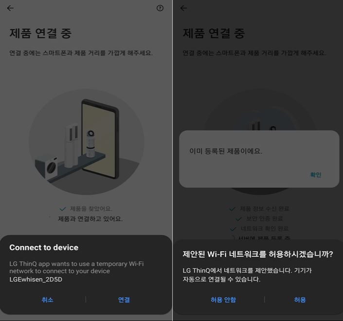 필자의 앱에서는 집에있는 LG 제품들을 모두