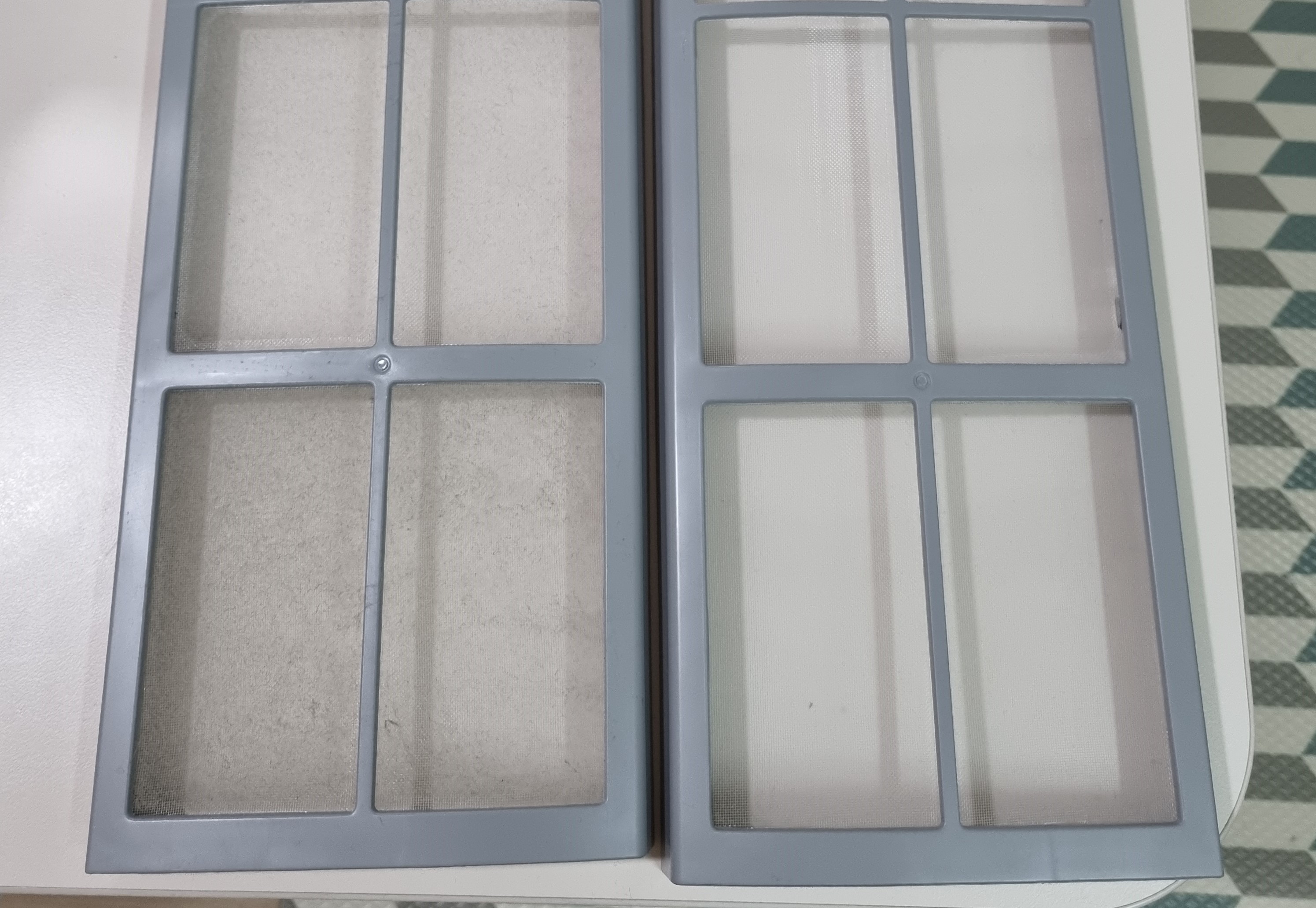 왼쪽이 새 필터 오른쪽이 헌 필터이다.
