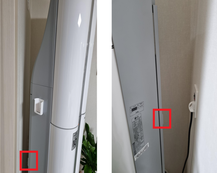 에어컨의 좌측과 우측을 보면 저렇게 빨간색