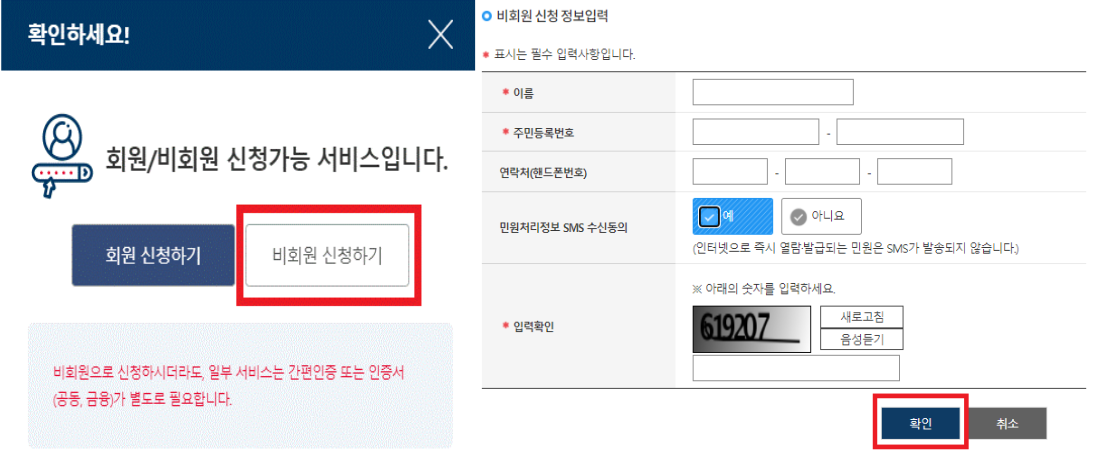 주민등록번호, 휴대전화번호를 적어주면 된다.