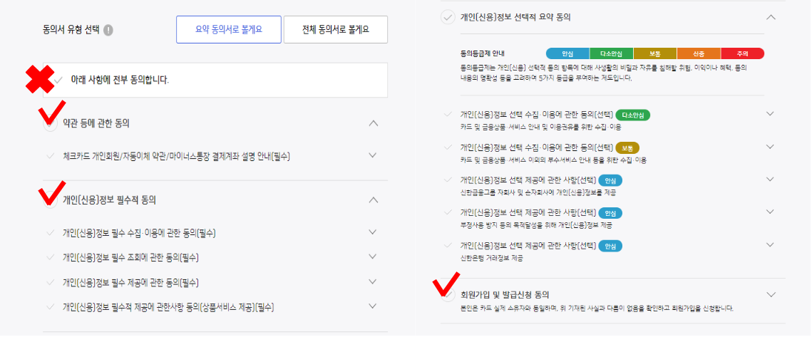 체크를 안해도 충분히 카드 신청이 문제없으니