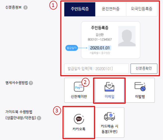 ① 신분 인증방법은 주민등록증, 운전면허증이
