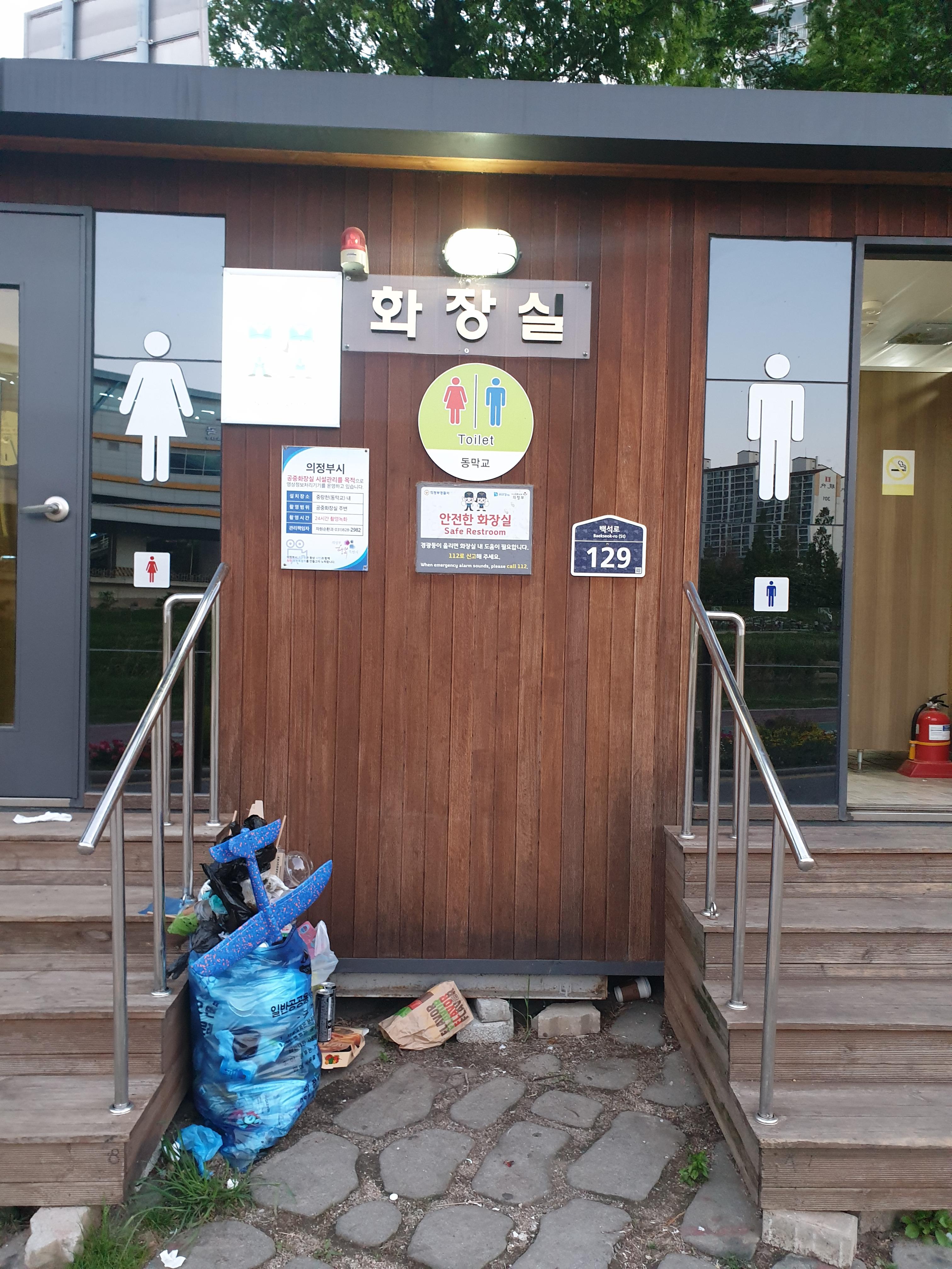 조금만더 길을 따라 걸으면 이렇게 화장실이 나온다. 밖에 나와있는 쓰레기 더미가 보여서 지저분한데 평소에는 저정도는 아니였다. 오늘은 휴일이라서 청소하시는분께서 쉬시는 것 같다.