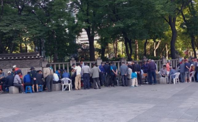 평소에는 이 정도로 고수들이 모여서 바둑으로 자웅을 겨루신다. 위 사진은 탑골공원 사진으로서 의정부 고수분들도 이 탑골공원의 고수분들만큼 실력이 있다고 필자는 굳게 믿고 있다. 다만 코로나기 때문에 조금만 조심해주시면 좋겠다는 생각을 해보았다.