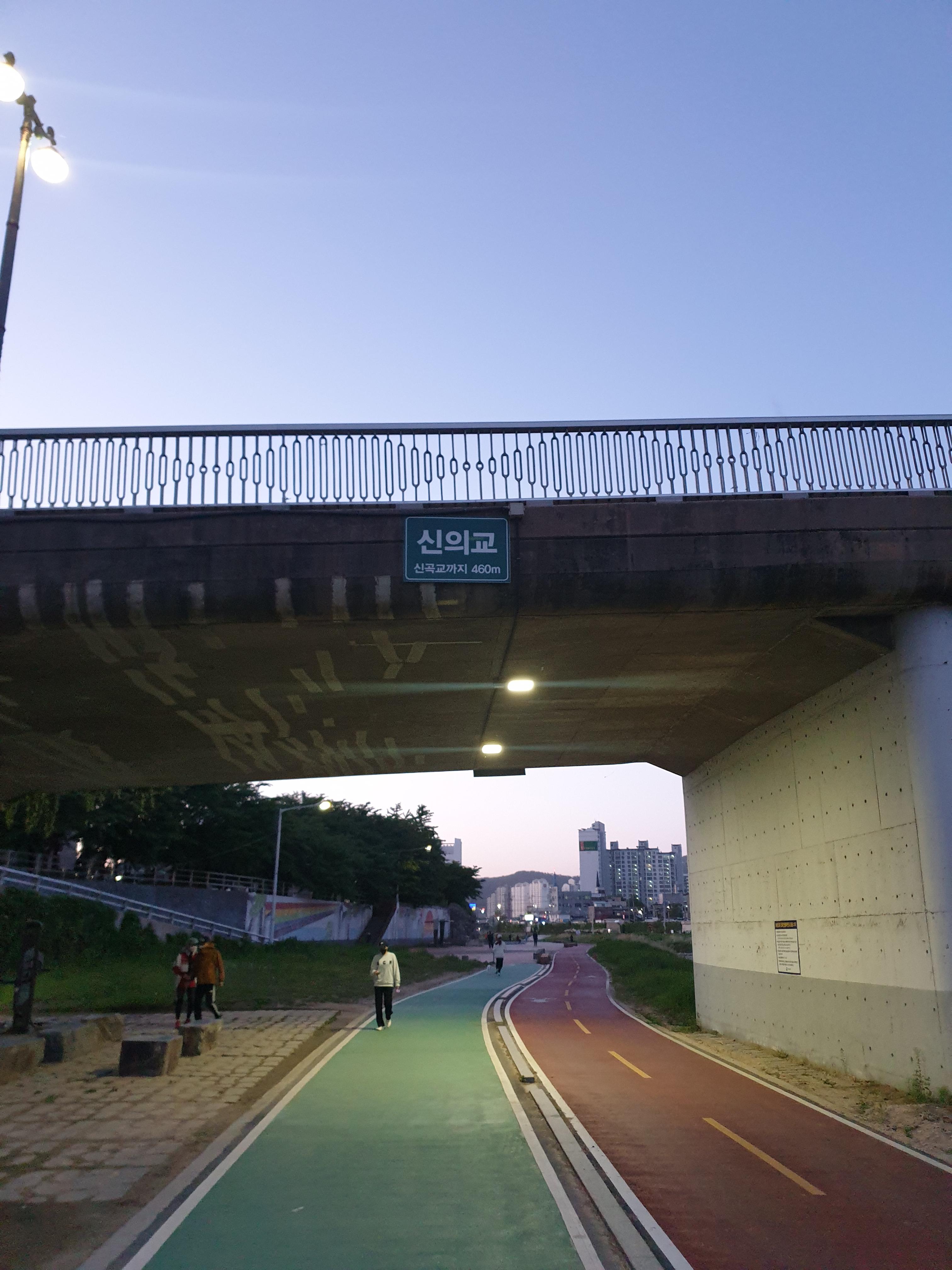 좀 더 지나서 신의교를 지나게 되었다. 여기서부터 해가 저물면서 어두워지고 있다.
