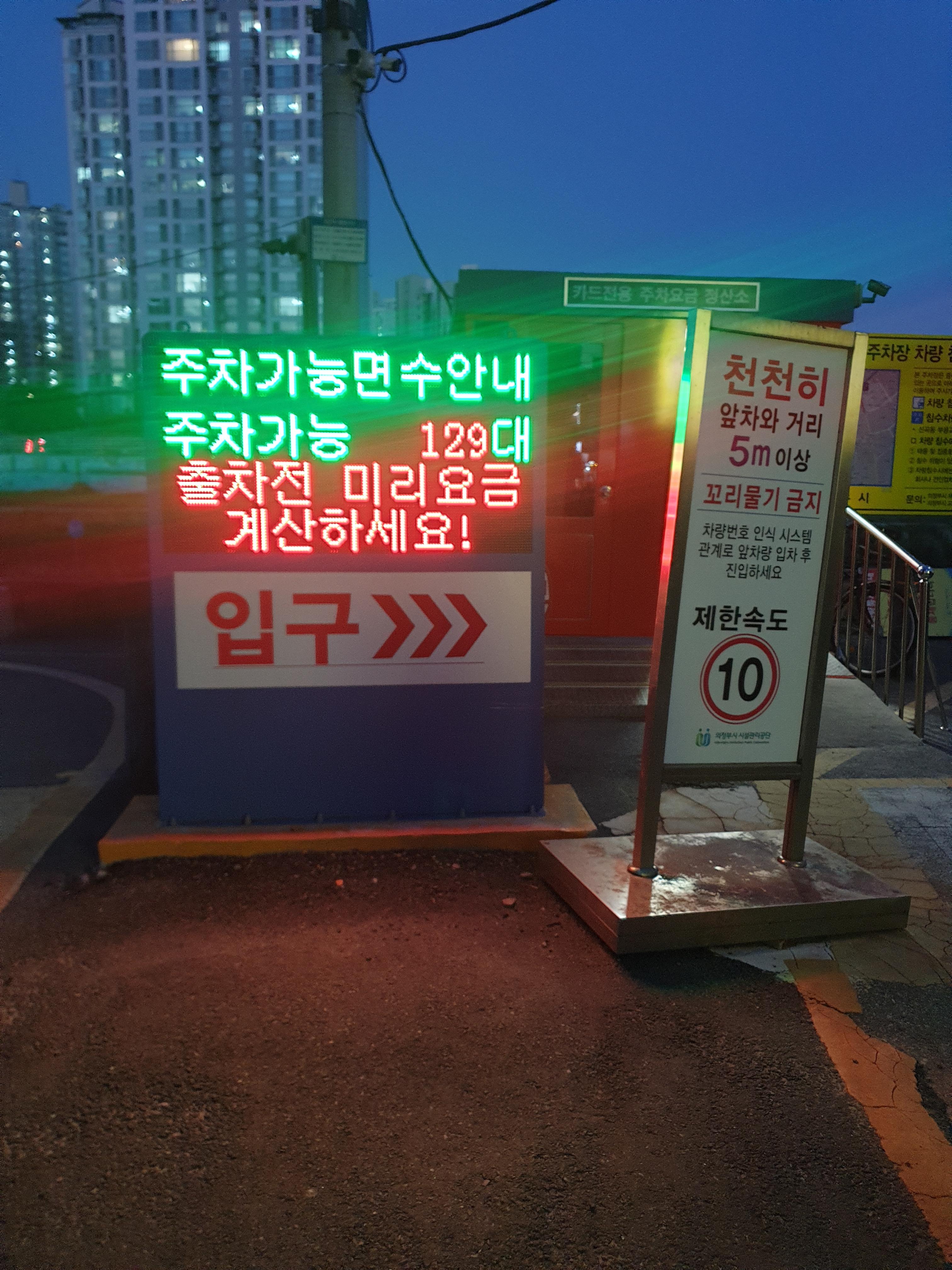 저녁 8시가 다 되가는 시점이라 129대나 주차가능하지만 휴일 낮에는 꽉차서 거의 차를 댈곳이 없을 정도로 인기가 많은 곳이다. 예전에 의정부 시민이 아니었을때는 주차요금이 비싸서 의정부에 놀러오면 여기서 주차해놓고 의정부에서 놀았던 기억이 있다.