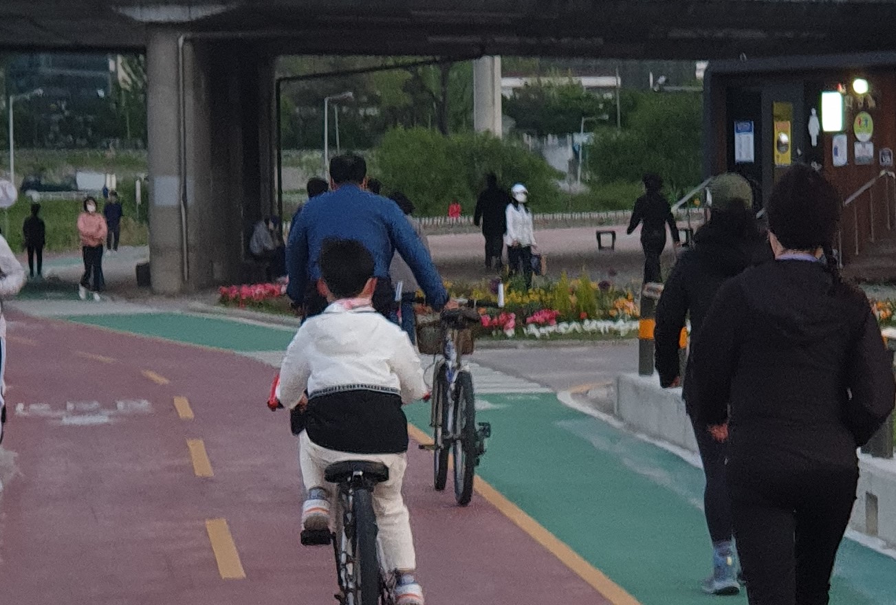 중랑천 산책로의 장점은 이렇게 보행자 도로와 자전거 도로가 나뉘어져있다. 자전거 타는 사람들과 보행자와의 마찰이 없을 것 같은 아주 좋은 환경이다.