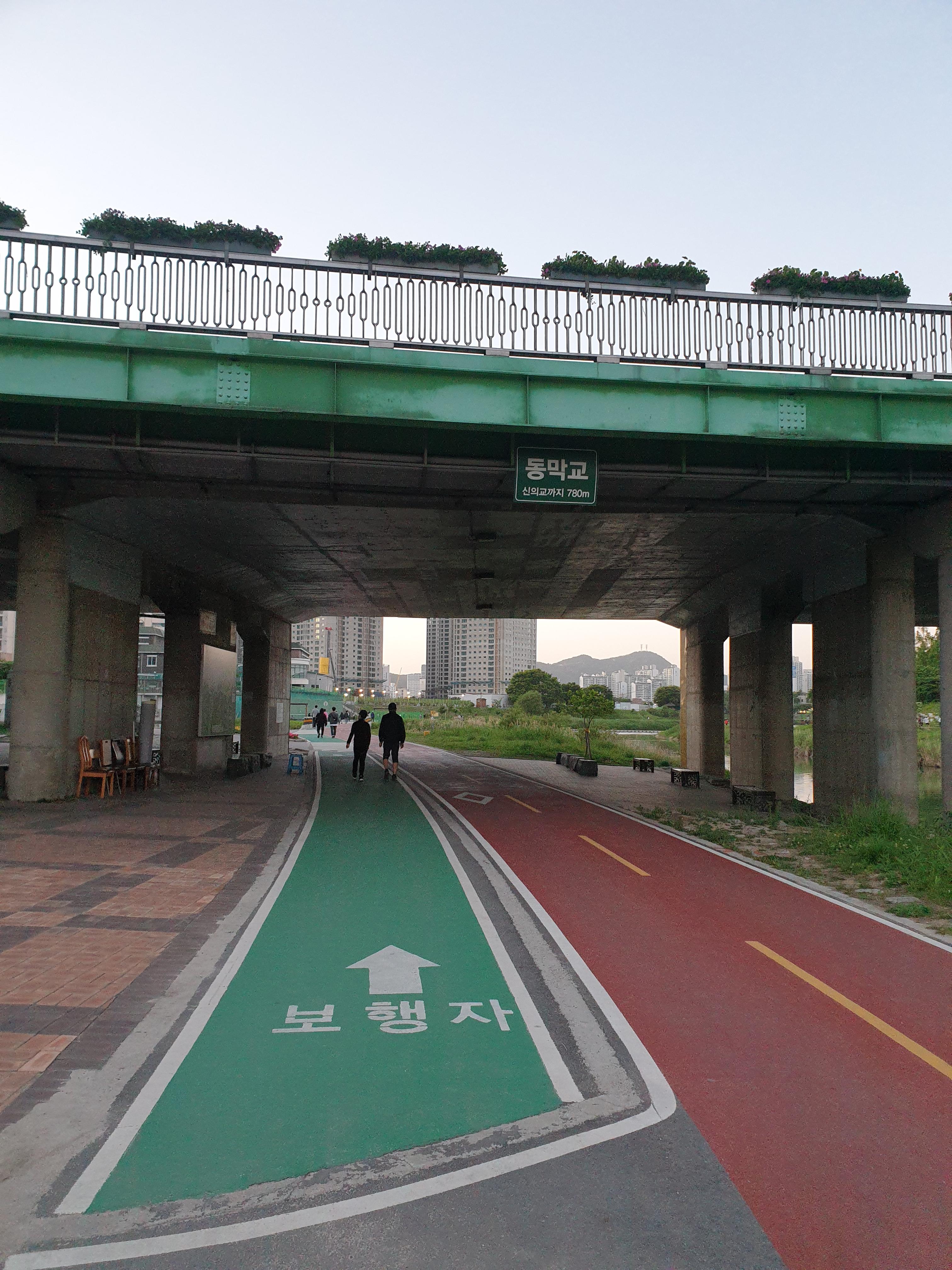 그리고 동막교 밑에는 이렇게 앉아서 쉴 수 있는 공간이 잘 마련되어있다.